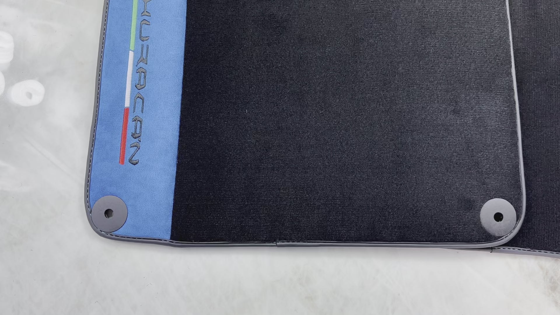 ブラック フロアマット ランボルギーニ ウラカン 2014-2023 ブルー アルカンターラ レザー付き