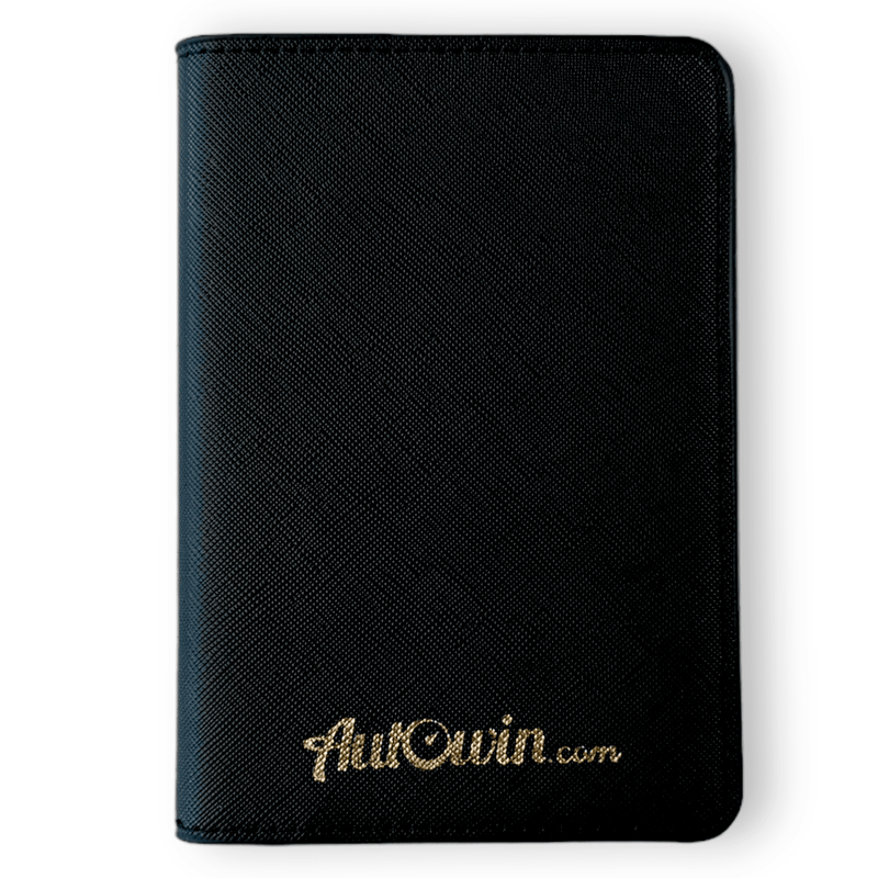 • ゴールドのAutoWinロゴ入りブラックレザーチャーム