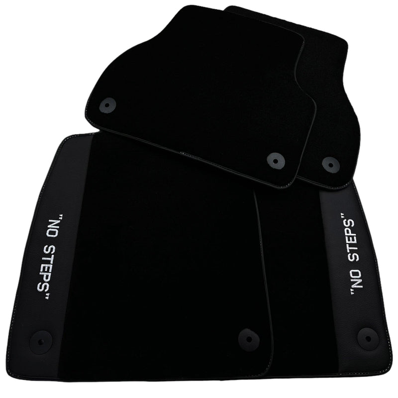 Schwarze Fußmatten für A4 - B9 Avant (2019-2023) | Fluoreszierendes „NO STEPS“-Logo