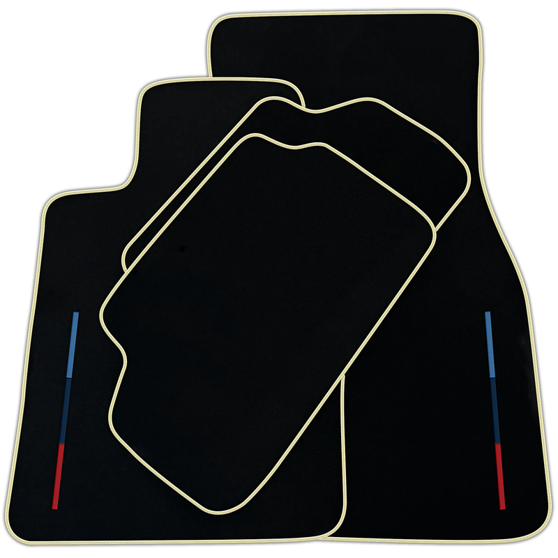 Schwarze Fußmatten für BMW X7 Serie G07 mit farbigen Streifen, maßgeschneidertes Set, perfekte Passform