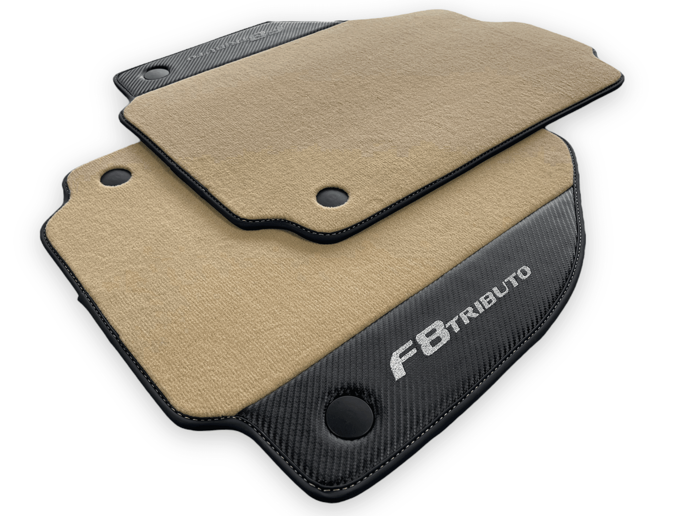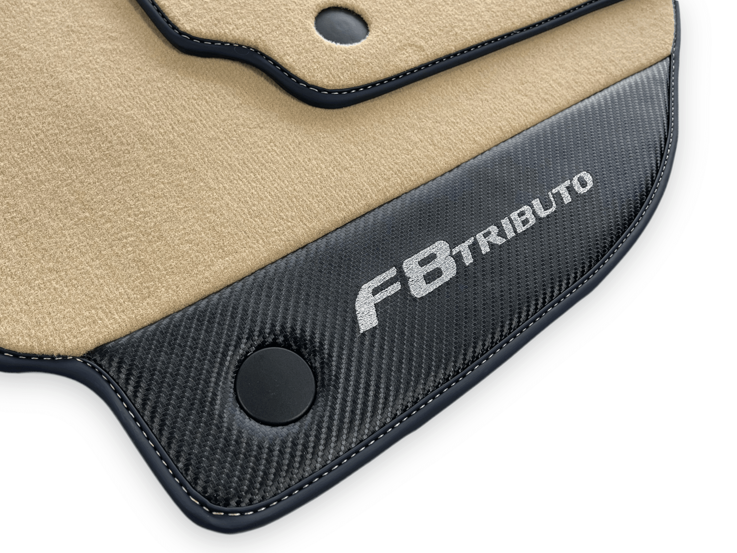 Beige Fußmatten für Ferrari F8 Tributo 2019–2022 mit Carbon-Leder