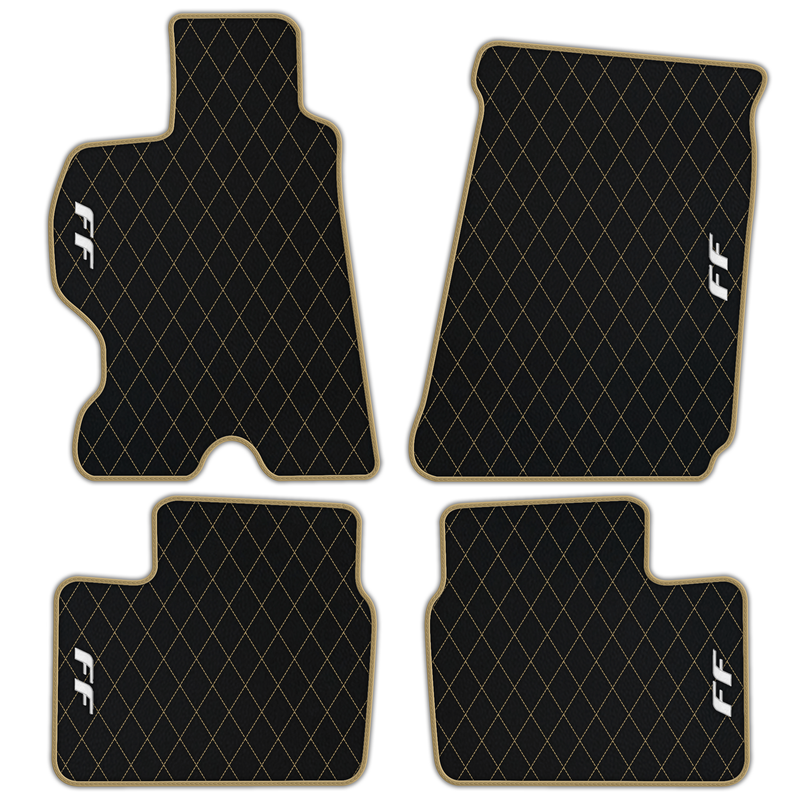 Schwarze Leder-Fußmatten für Ferrari FF (2011-2016) mit Einzel-Diamantmuster | Komplett-Set-Option