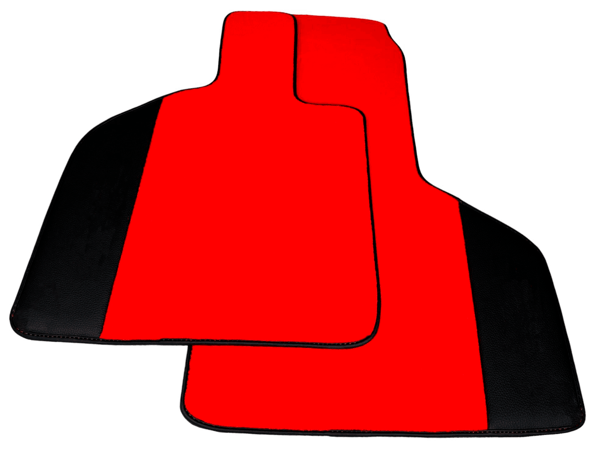 Maßgefertigte rote Fußmatten für Lamborghini Huracan STO mit schwarzem Leder und roten Nähten
