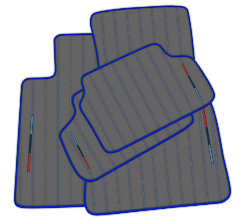 Werten Sie Ihren BMW mit diesen hochwertigen grauen Lederfußmatten auf. Sie sorgen mit ihrem Linienmuster und den blauen Nähten nicht nur für einen eleganten und stilvollen Look, sondern verleihen mit der ikonischen M-Trikolore zusätzliche Eleganz. Perfekt, um den Boden Ihres Fahrzeugs zu schützen und gleichzeitig sein Erscheinungsbild zu verbessern.