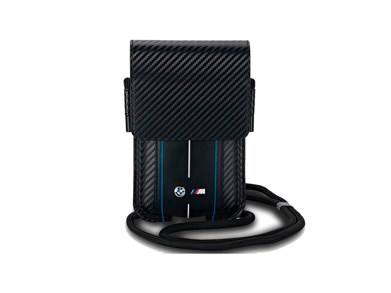 Elevate your everyday essentials with the BMW M Series Carbon & Blue Stripes phone pouch. Made from durable eco-leather and nylon, this weather-resistant bag combines practicality with motorsport-inspired style. Featuring a sleek carbon motif, M Performance stripes, and official BMW branding, it offers secure storage for your phone and cards. The adjustable strap ensures all-day comfort, while the spacious main compartment and extra pocket keep everything organized.