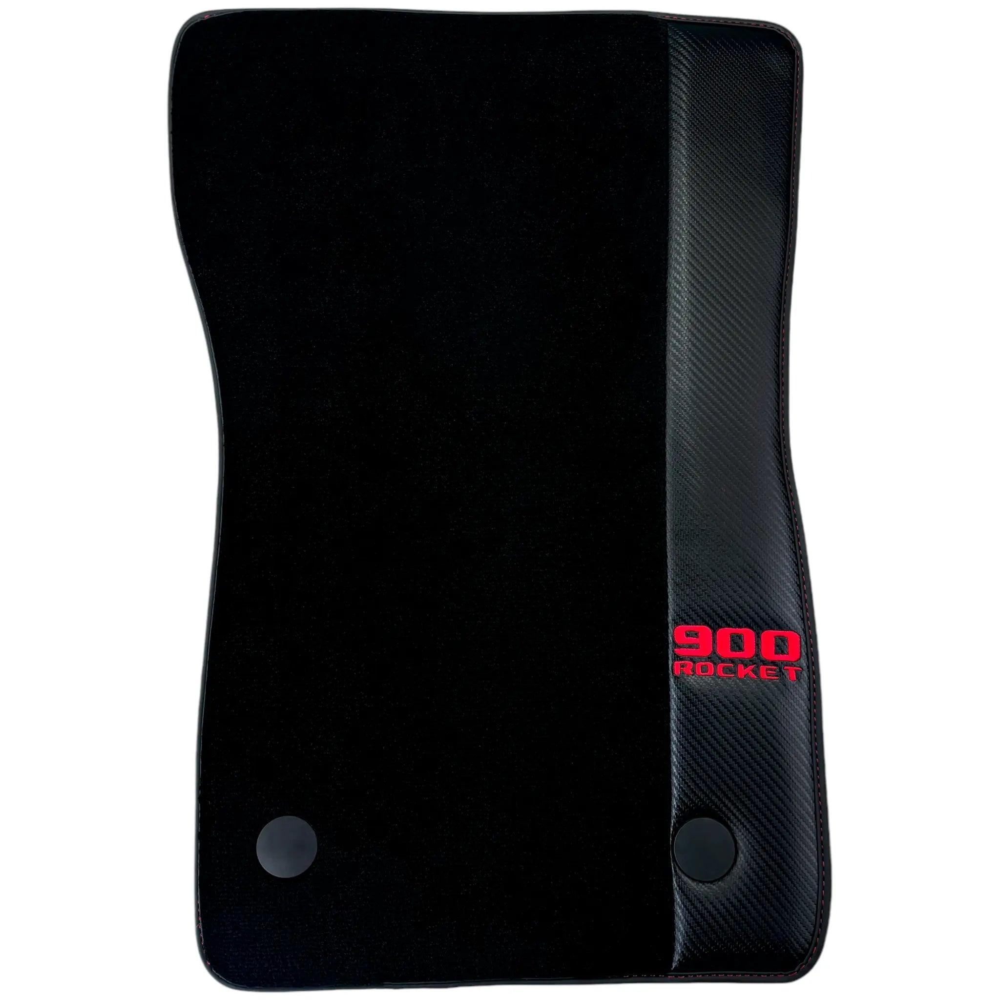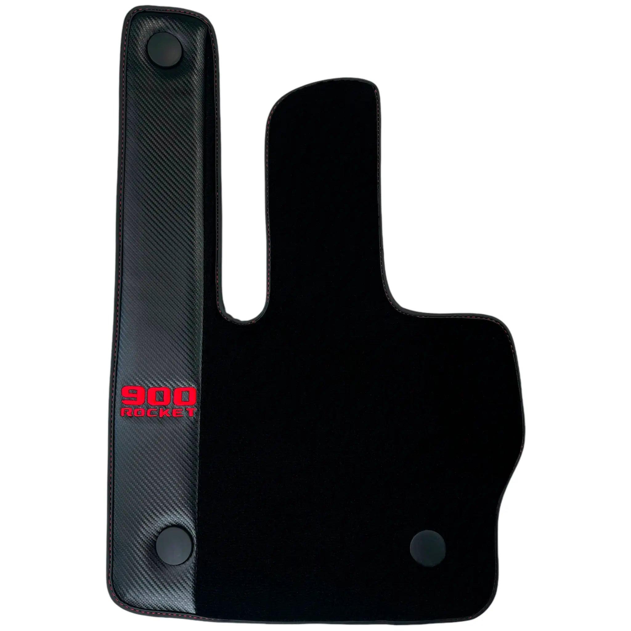 The Black Floor Mats for Mercedes-Benz G Class W464 (2021-2024) with Leather Borders are the perfect addition to your luxury vehicle. With a sleek design and red logo "900 Rocket", these mats provide both style and function. Protect your car's floors while adding a touch of elegance. Expertly crafted for a perfect fit.