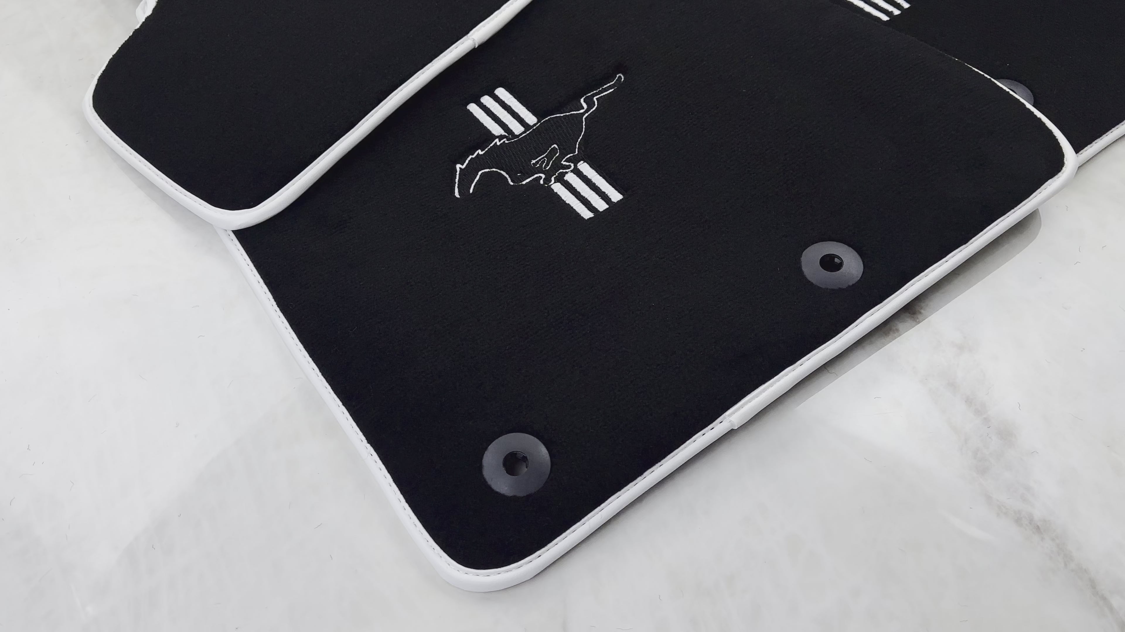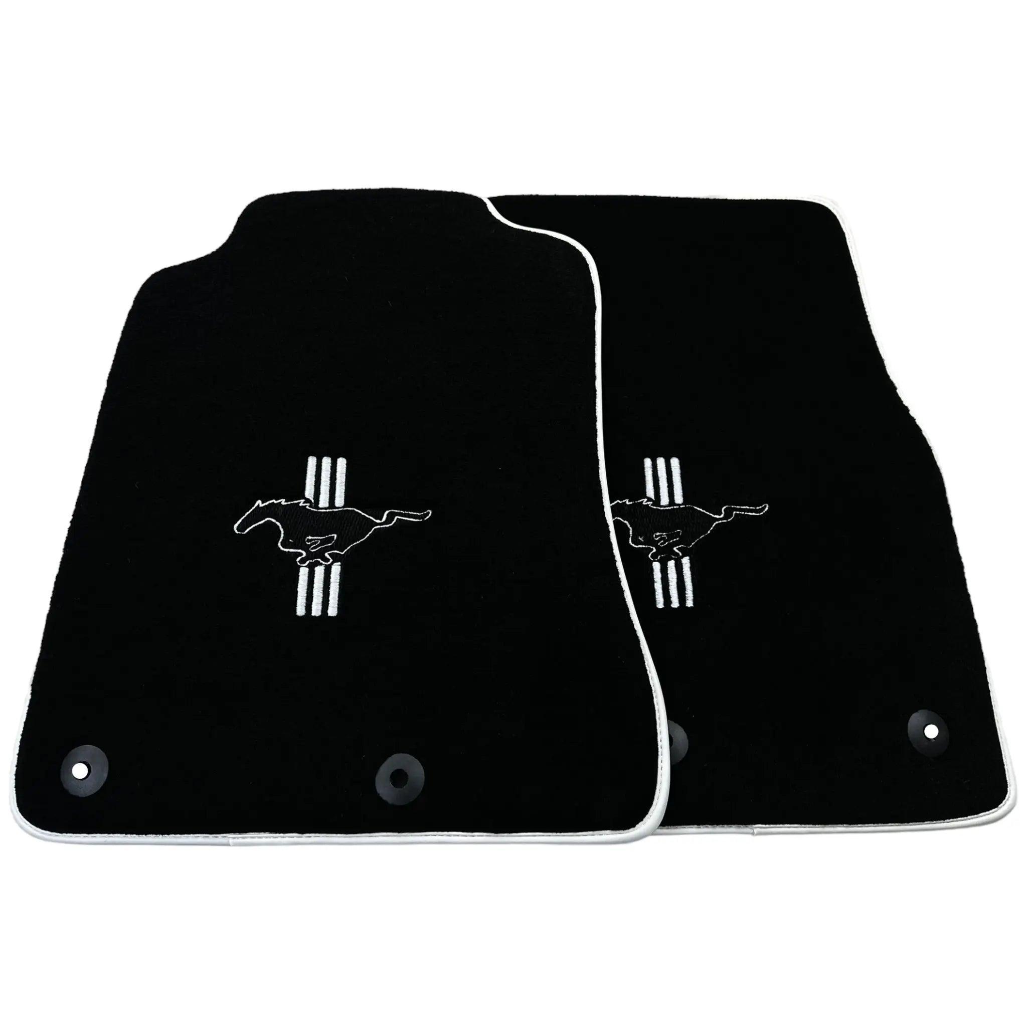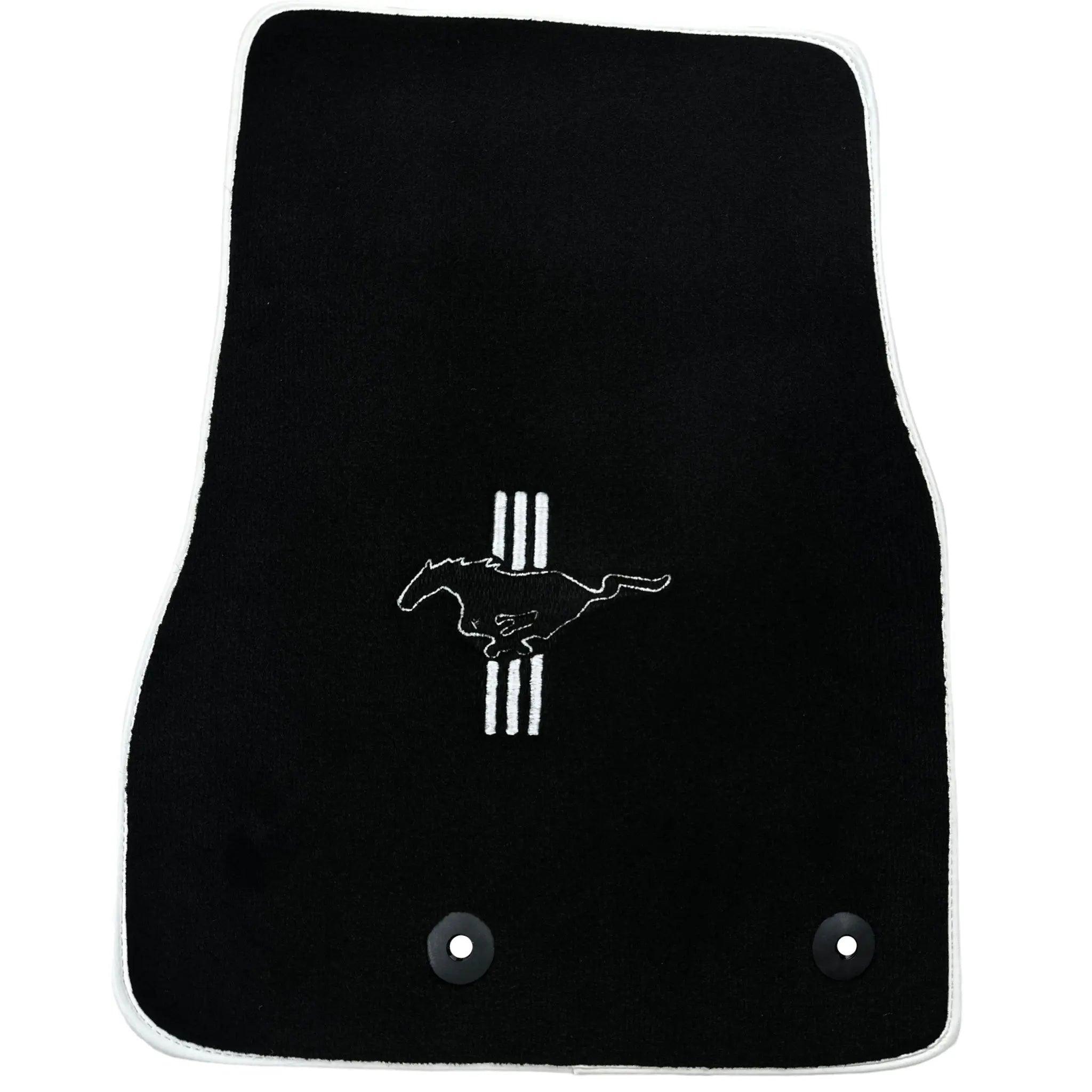 Black Floor Mats with White Trim for Ford Mustang V FL (2011-2014) With Pony