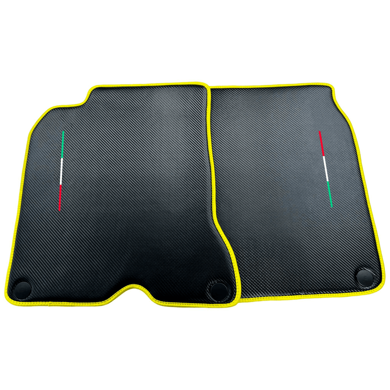 Carbon Fiber Leather Floor Mats For Ferrari California T (2015-2018) with Yellow Trim