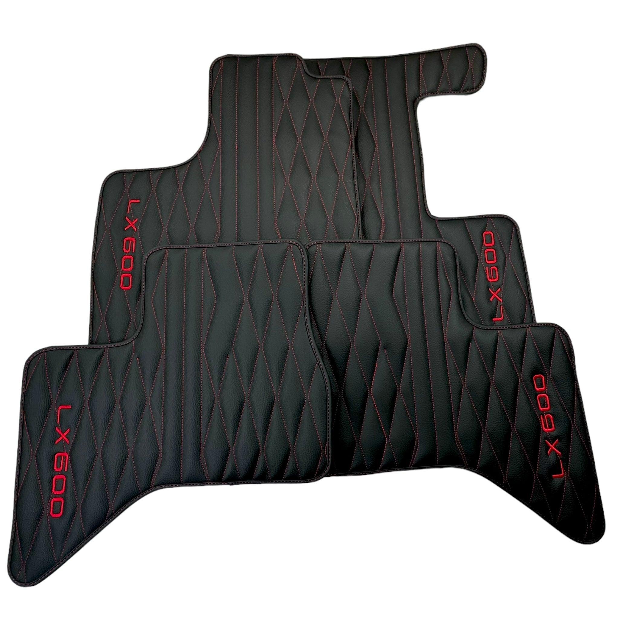 Leather Floor Mats for Lexus LX 600 (2022-2024) with Red Stitching