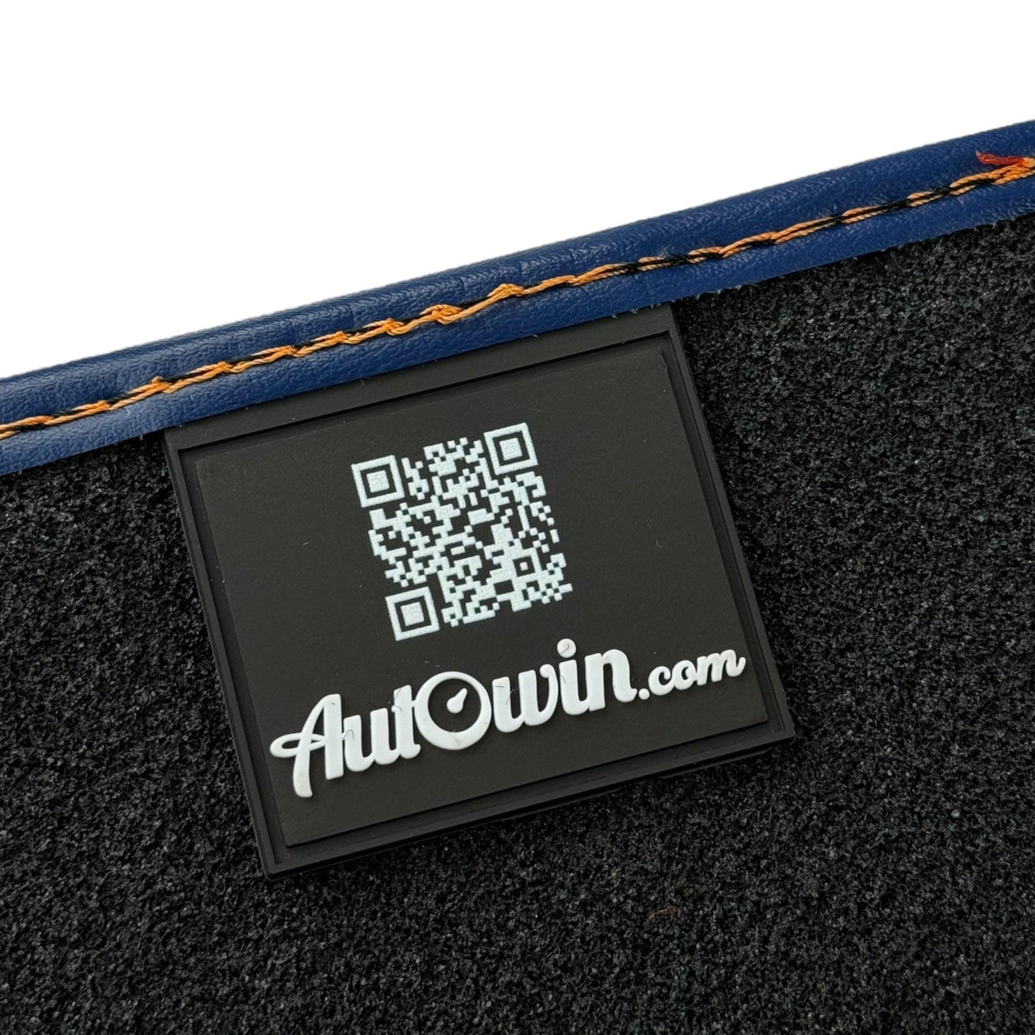 Dark Blue Floor Mats for Rolls Royce Cullinan with Orange Leather
