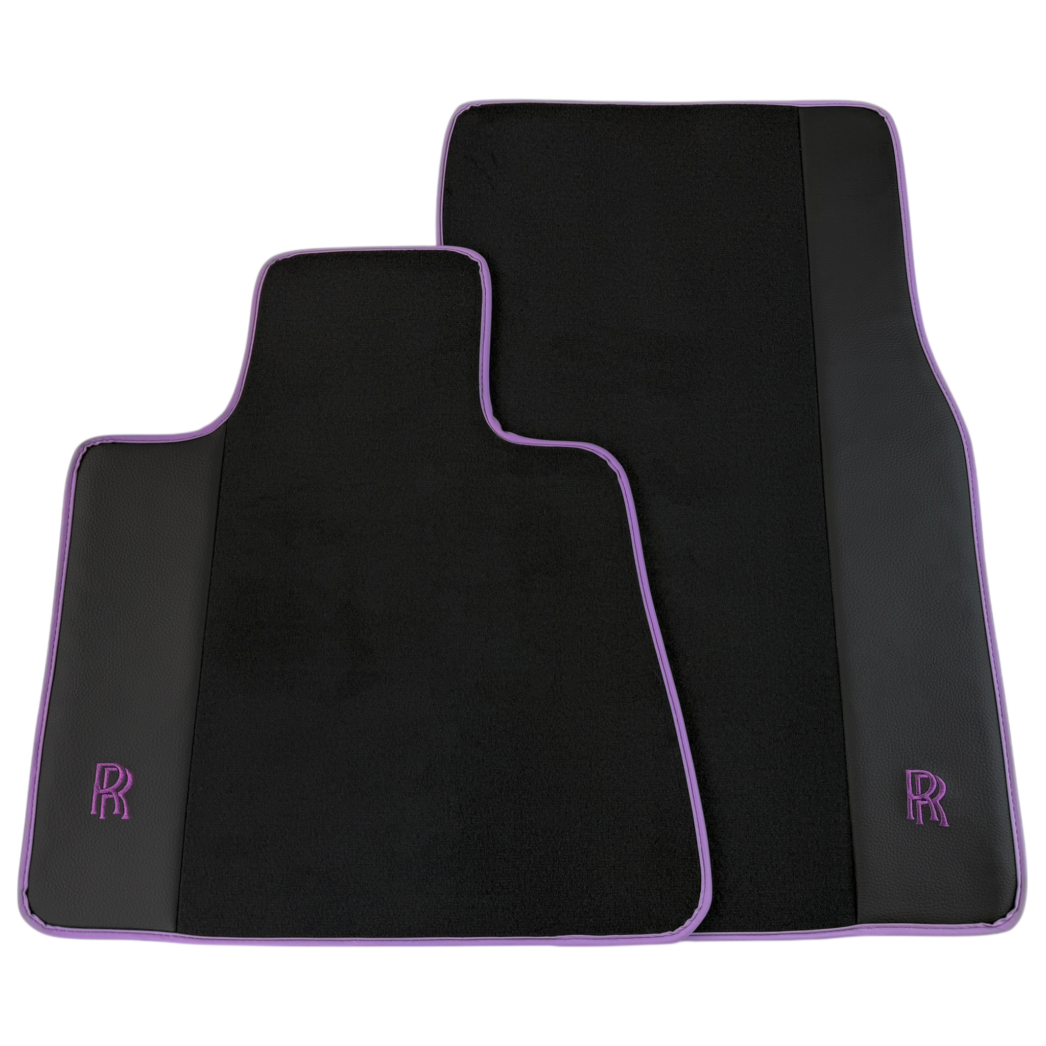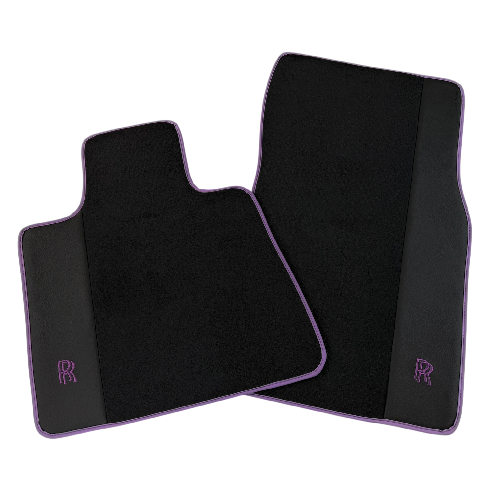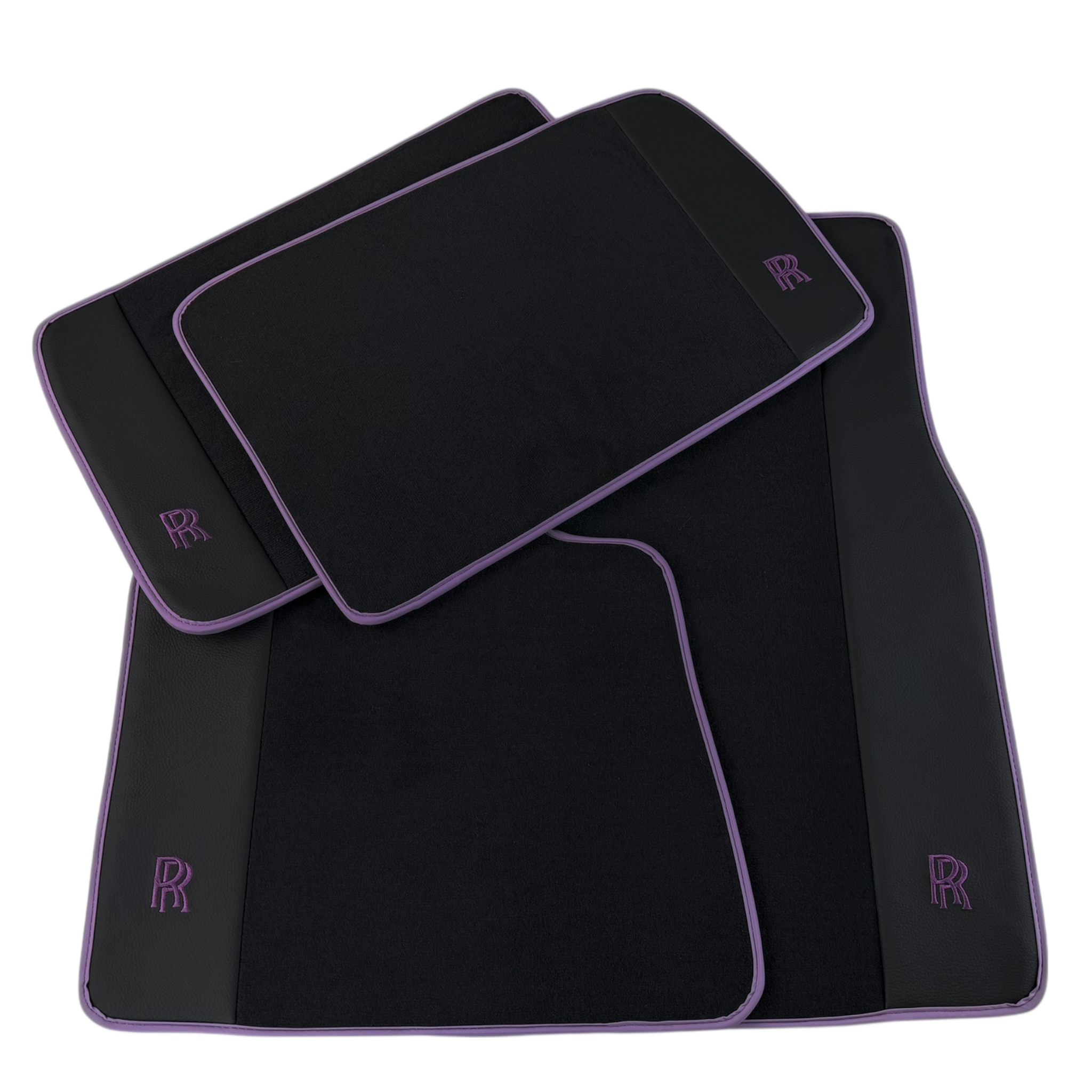 Black Floor Mats for Rolls Royce Ghost Series II (2021-2024) with Purple Leather | RR Logo