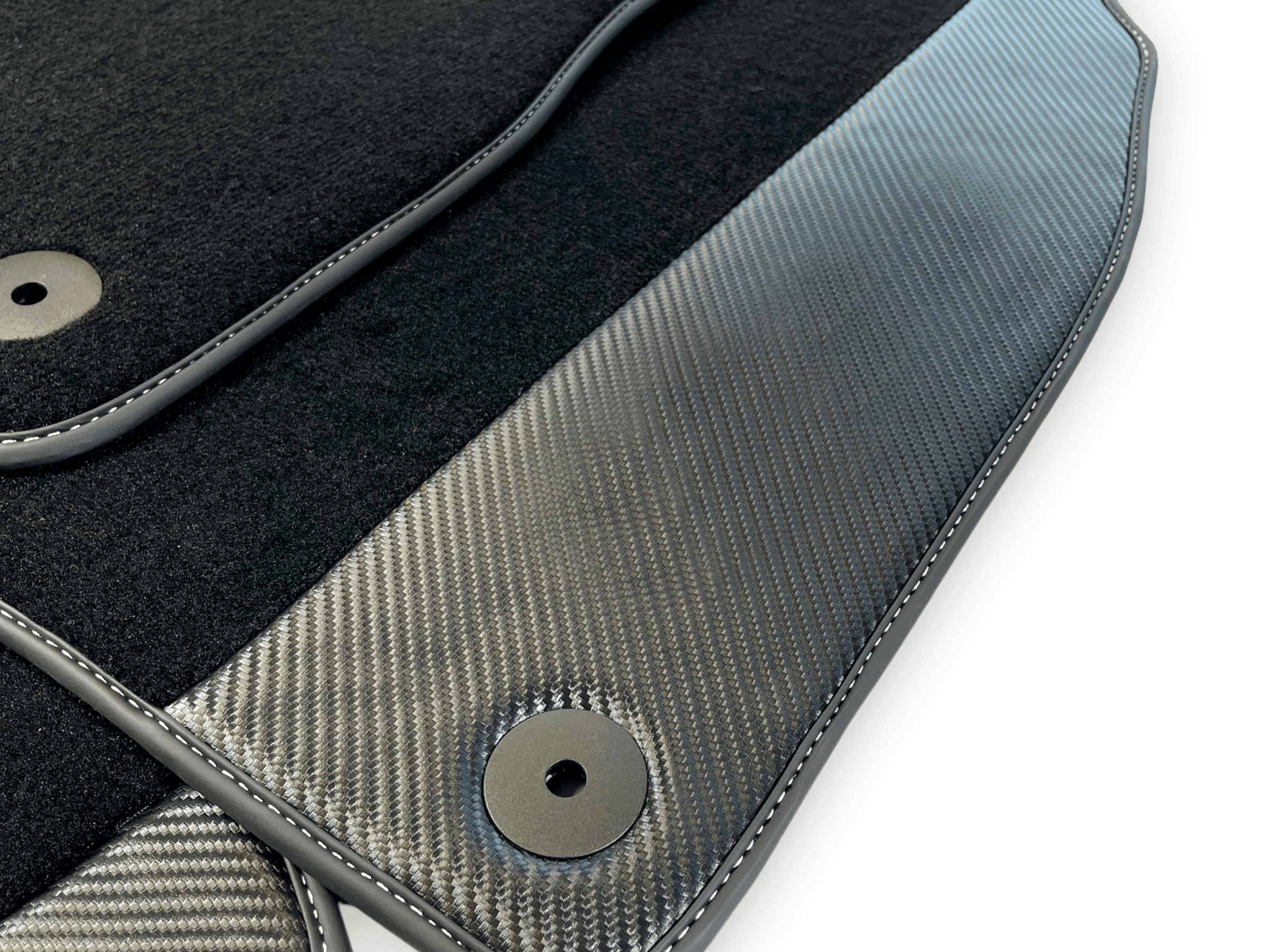 Enhance the interior of your Lamborghini Urus with these black floor mats made of luxurious carbon fiber leather. These mats not only elevate the aesthetic of your car, they also provide superior protection for your floors. Experience the ultimate combination of style and functionality with these black floor mats for your Lamborghini Urus.