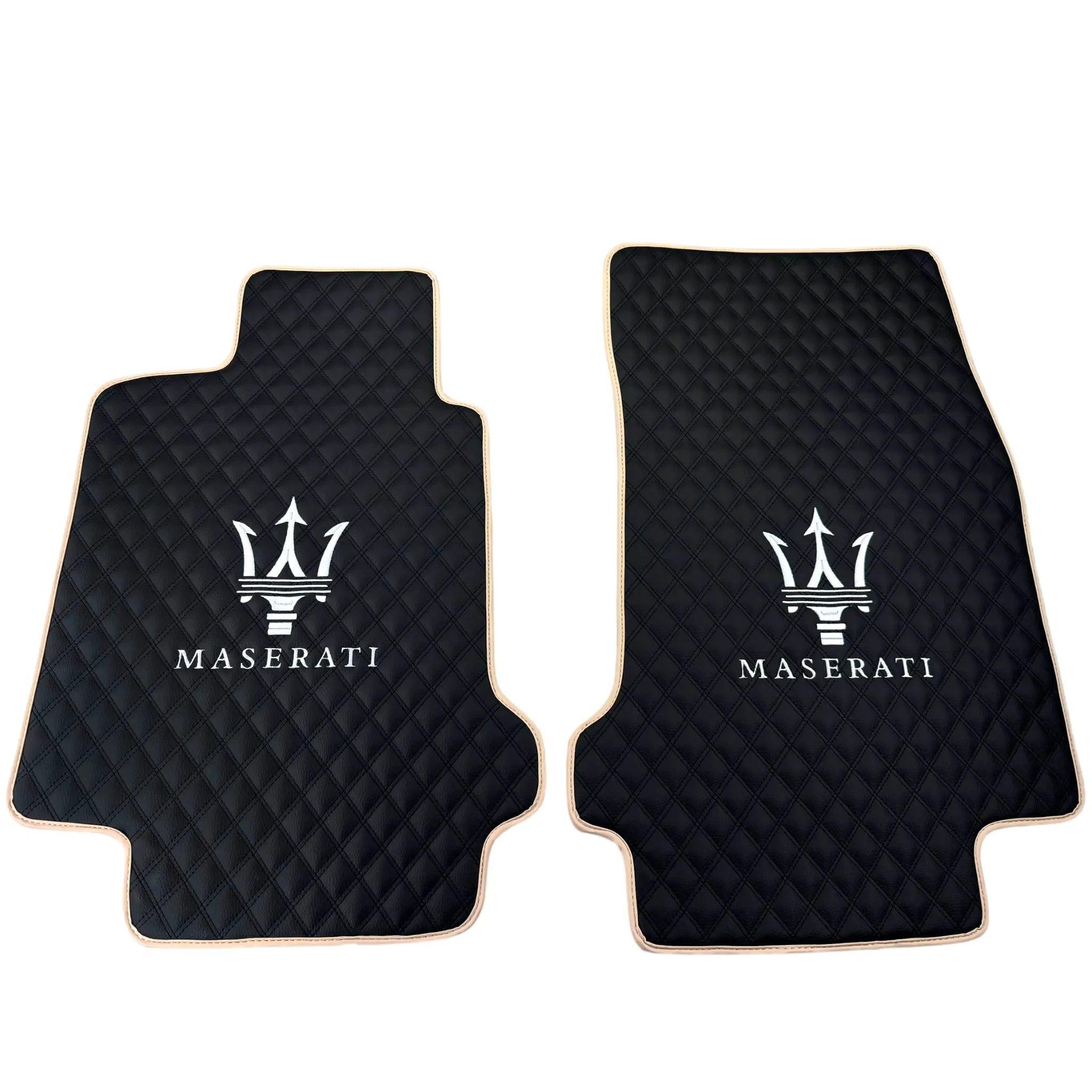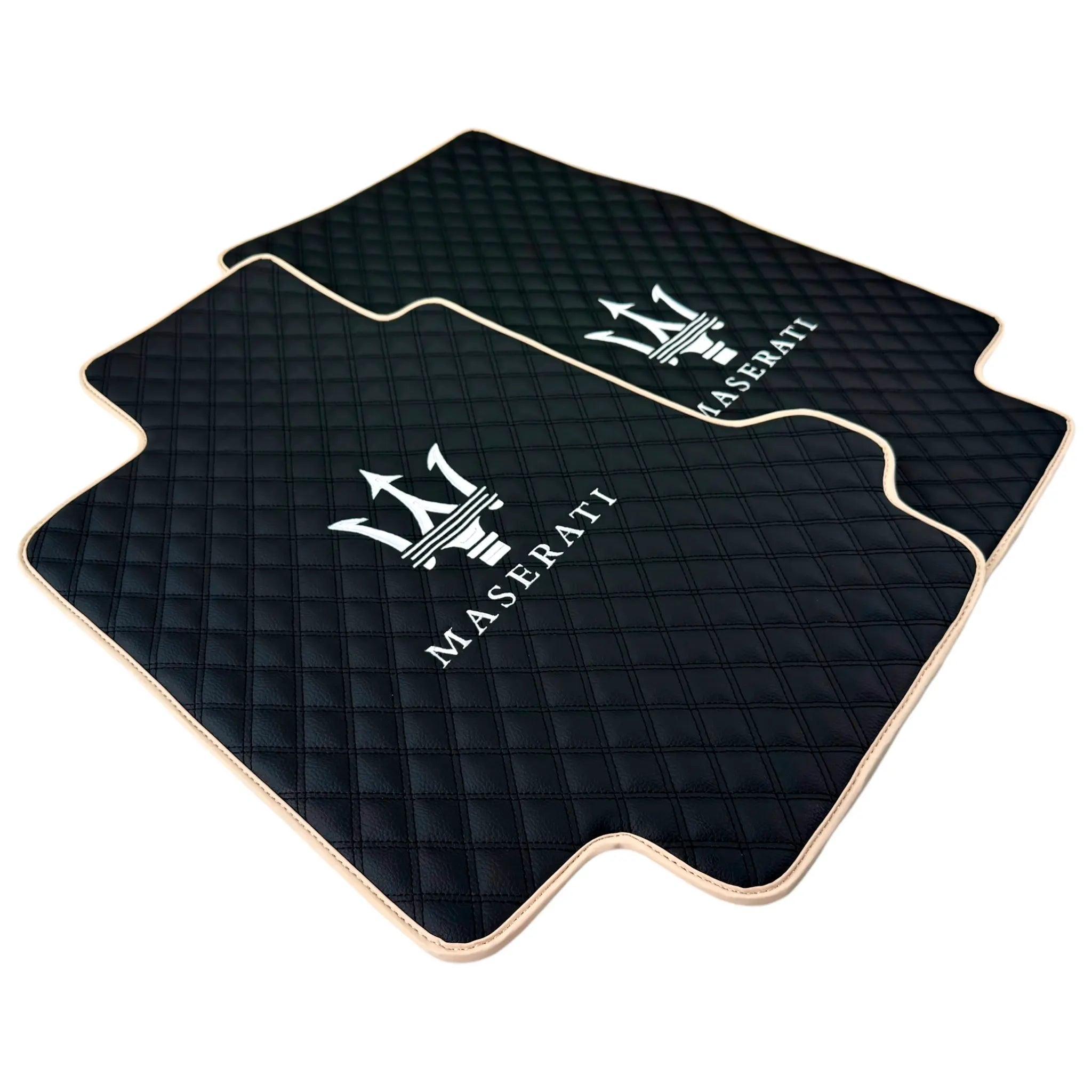 Black Stitched Leather Floor Mats for Maserati GranCabrio Sport (2011-2019) | Beige Trim