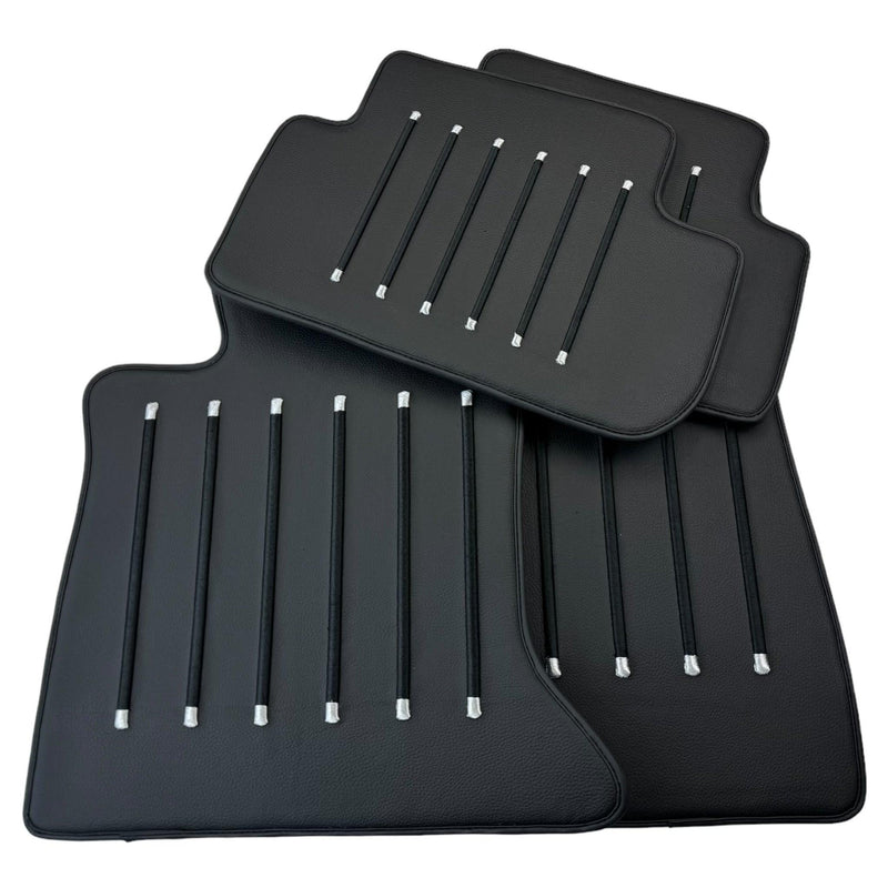 Enhance the luxury and style of your Rolls Royce Wraith (2013-2023) with these custom-fit leather floor mats from AutoWin. Made with premium black leather and adorned with black and silver stripes, these mats add both elegance and practicality to your vehicle. Experience perfect fitment and elevated comfort with AutoWin.