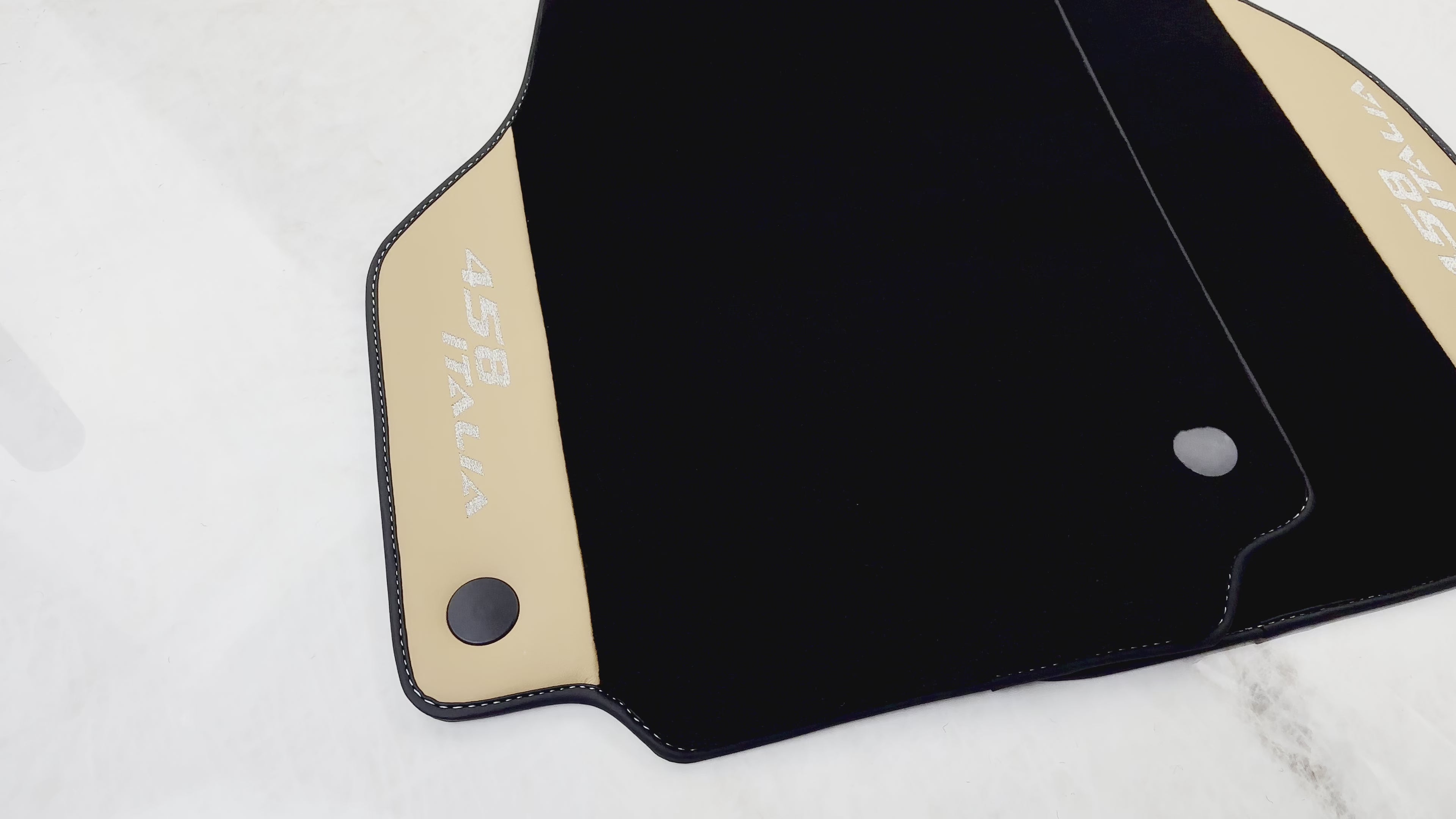 フェラーリ 458 イタリア (2009-2015) 用ブラック フロアマット ベージュ ナッパレザー付き