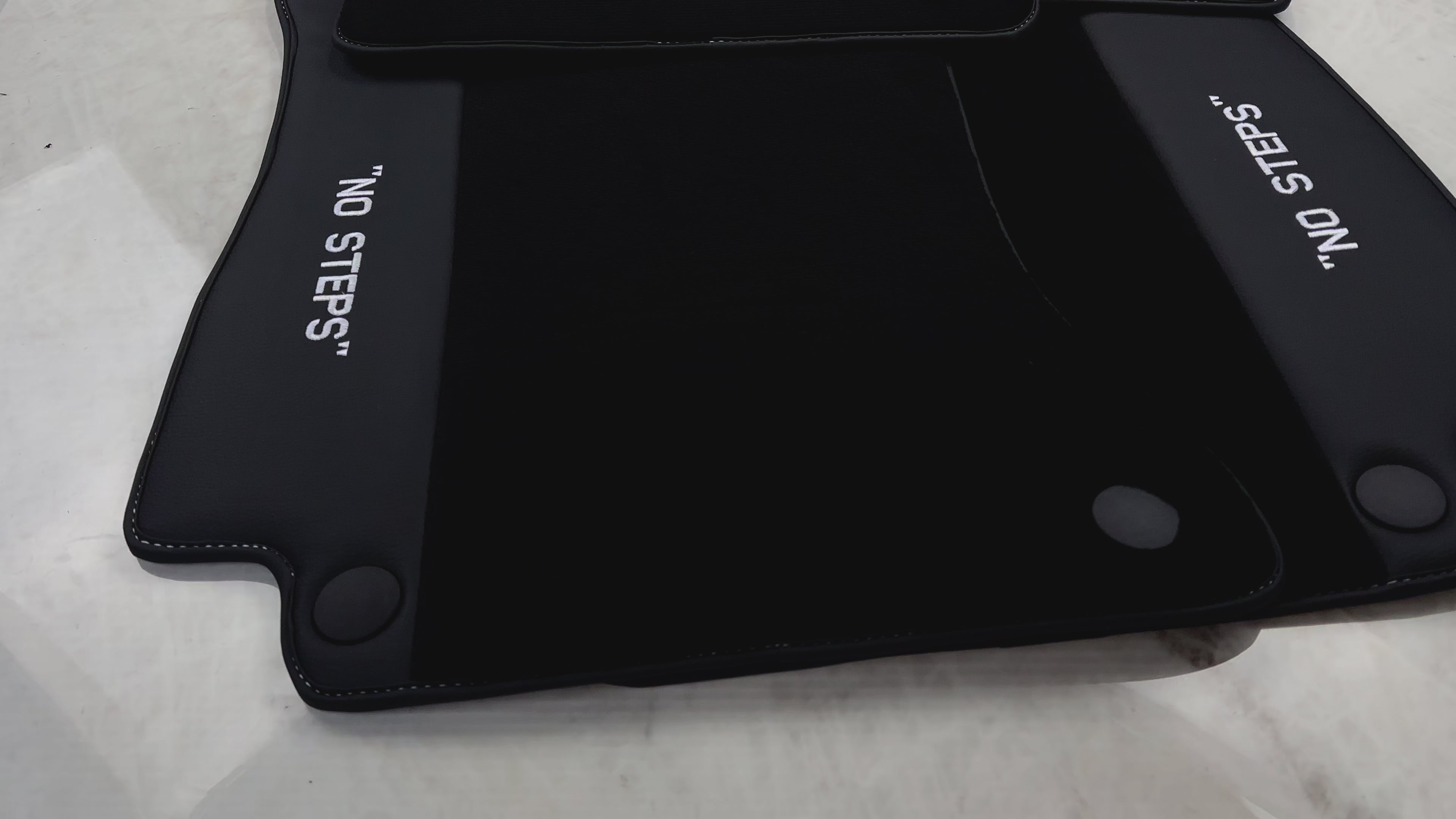 メルセデス ベンツ E クラス W213 セダン (2020-2023) ハイブリッド用ブラック フロアマット | 「NO STEPS」蛍光ロゴ