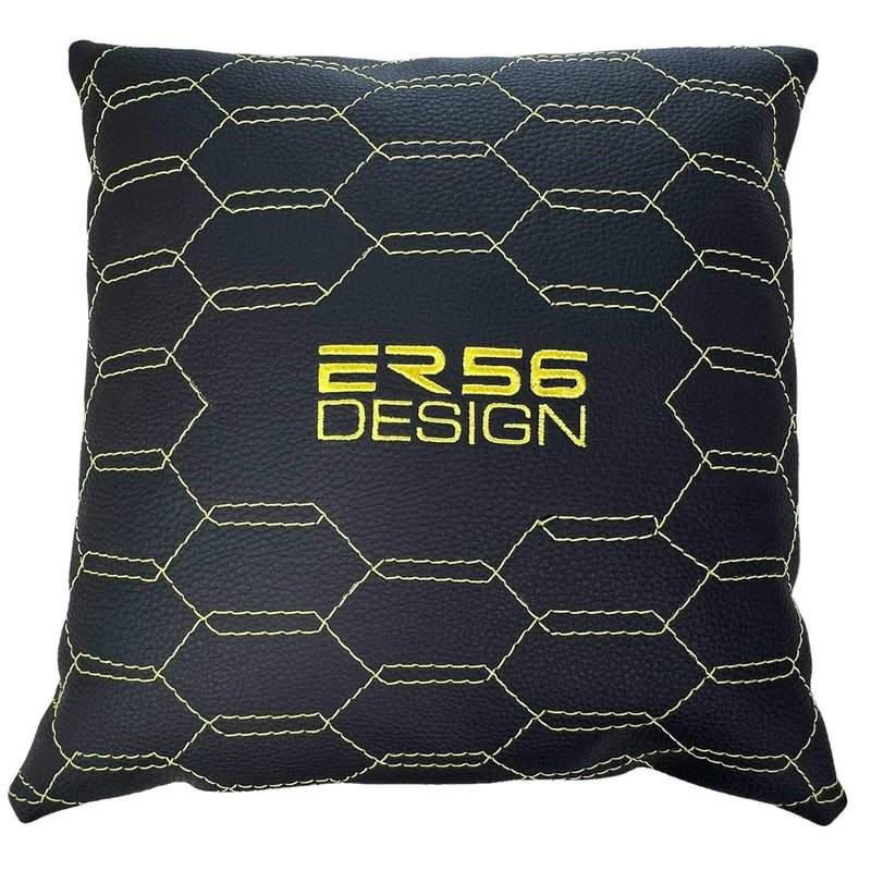 ブラック レザー ピロー ER56 デザイン 2 個セット イエロー 縫製