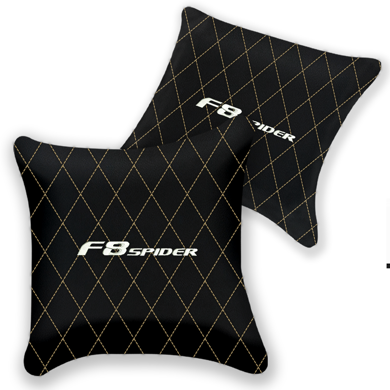 フェラーリ F8 スパイダー (2019-2023) 用カスタマイズ可能なブラックレザーピロー 2個セット - ステッチカラー各種